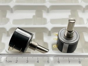 10-turn wirewound potentiometer. ±0.05% linearity, 5 million cycles. Precision timing, speed, temperature adjustment.