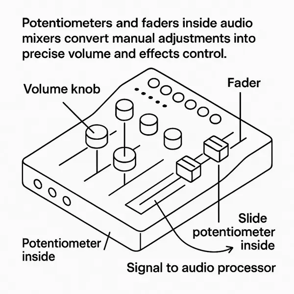 Linear potentiometers (also known as slide potentiometers or faders) are widely used for audio mixing console faders, motor control, and industrial speed regulation systems. Featuring smooth linear motion, adjustable resistance, and exceptionally long life (up to one million cycles or more), these potentiometers are ideal for real-time sound level control, channel balancing, automated audio mixing, and precise motor speed adjustment. Motorized linear potentiometers provide remote and programmable adjustment, supporting both advanced digital mixing consoles and automated industrial machinery. Customization options—including resistance values, travel length, and mechanical configuration—are available to meet the specific requirements of audio, motorized, and industrial applications.