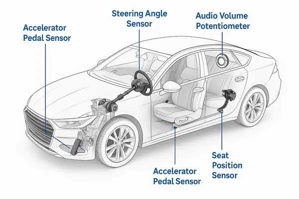 Conductive plastic delivers smooth feel, tight linearity, and long life—built for servo-grade control.